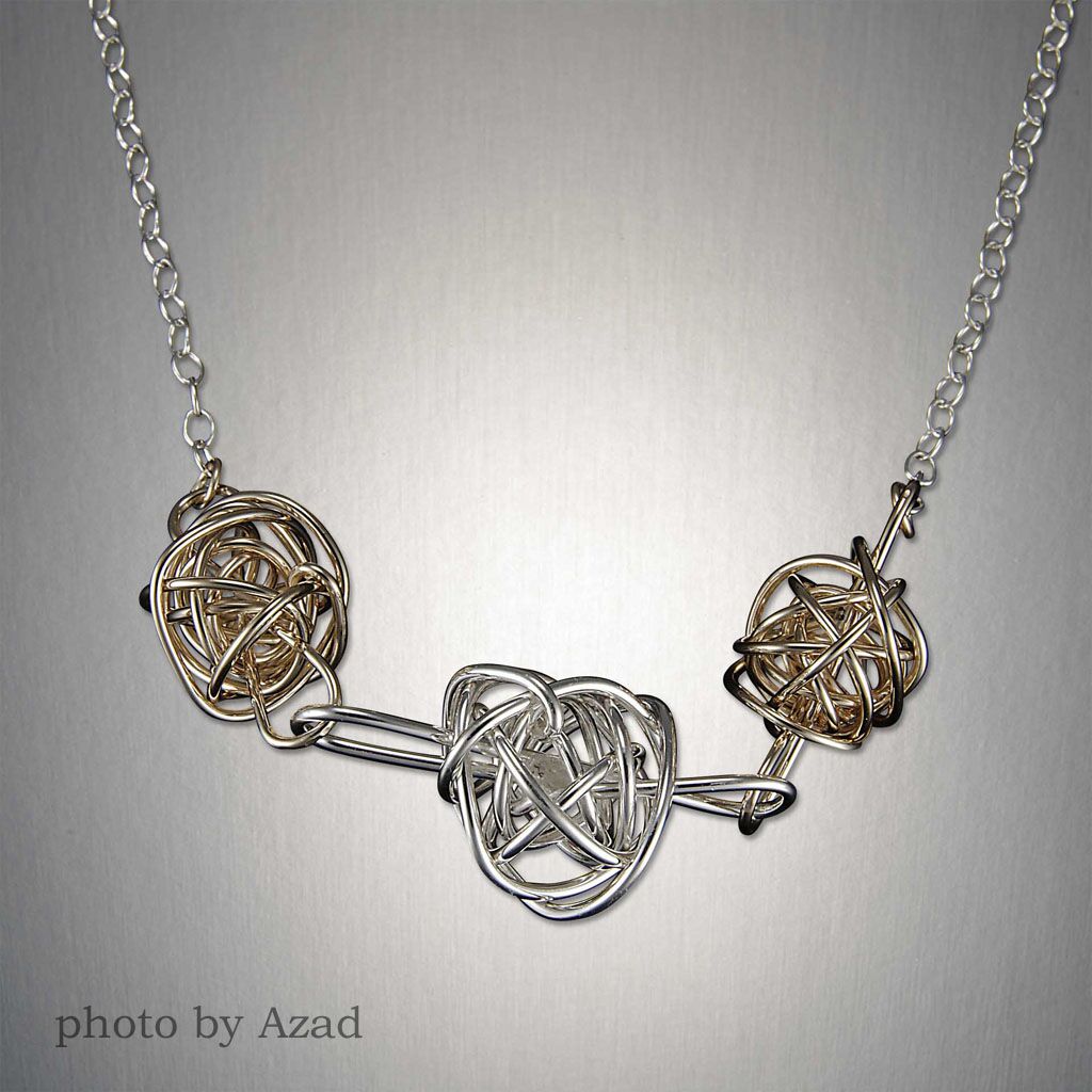 Hand crafted in California, by designers Lynette and Erika, a mother/daughter team. Their co-designing brings together their different histories and training, combining to create pieces that are both timeless and elegant while also pushing the envelope when it comes to dramatic flair and style. The hand forged pieces transform wire and sheet metals into wearable works of art.